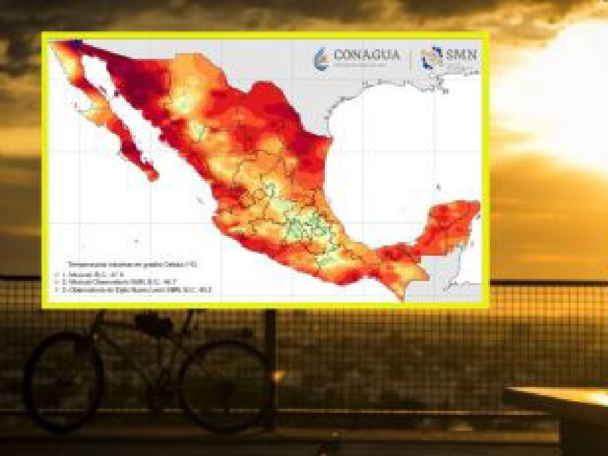 El Servicio Meteorológico Nacional (SMN) informó que continuará el ambiente caluroso a muy caluroso sobre entidades del norte del país, estados del litoral del Pacífico, litoral del Golfo de México y la Península de Yucatán, con temperaturas superiores a los 40 grados centígrados en 6 estados del país.