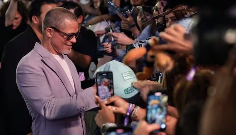 En punto de las 19:30 horas, los gritos anunciaron el arranque del evento estelar: la llegada del elenco. Primero apareció el director Joseph Kosinski , seguido por Kerry Condon, Jeremy Kleiner y Damson Idris. Y entonces llegó Brad Pitt, vestido con un saco rosa visiblemente rasgado, lo que no impidió que robara el aliento de más de uno.