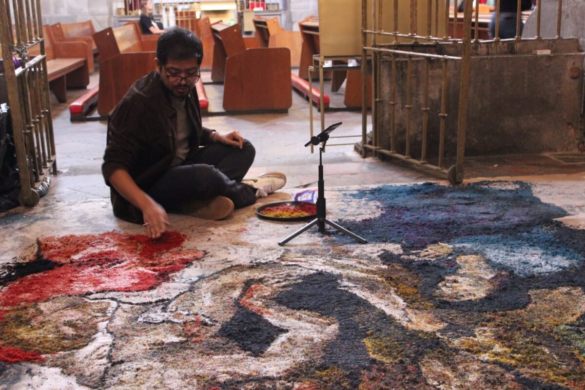 Por otro lado, en el Templo de Santo Domingo se encuentra la instalación artística del tapete de aserrín de “Pnauma Thyasiasín”, obra del artista Miguel Zurita, inspirado en la obra de Rubbens “El descendimiento de la cruz”, tomando referencias pictóricas del pintor novohispano Cristobal Villalpando, trazado manualmente con aserrín teñido y granos de sal. Esta obra estará para el disfrute de todos los visitantes en el Templo de Santo Domingo.