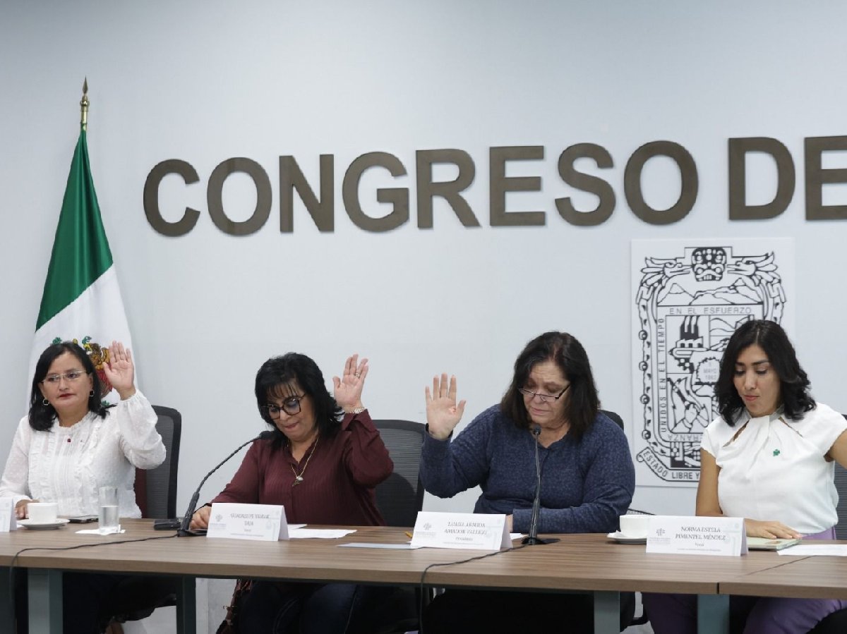 Durante la sesión estuvieron presentes las diputadas Luana Armida Amador Vallejo, Esther Martínez Romano, Norma Estela Pimentel Méndez y Guadalupe Yamak Taja.