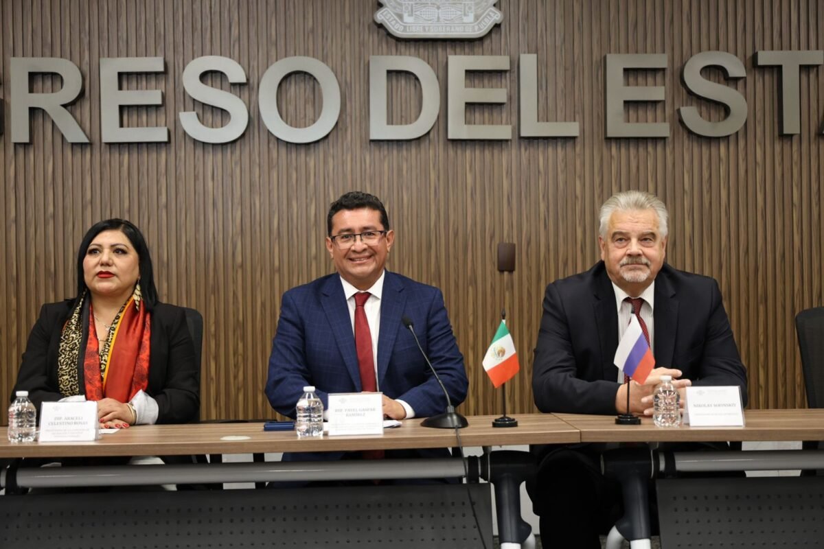 Con motivo de la conmemoración de los 135 años de relación diplomática ininterrumpida entre México y Rusia, el diputado Pavel Gaspar Ramírez, presidente de la Junta de Gobierno y Coordinación Política del Congreso del Estado, recibió al embajador de la Federación de Rusia en México, Nikolay Sofinskiy, en un acto que refrenda los lazos históricos de cooperación entre ambas naciones.