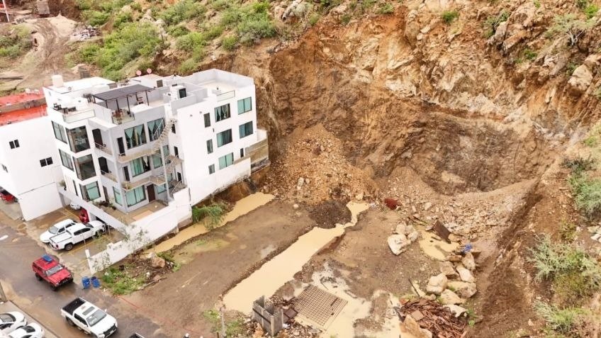 Fue  alrededor de las 11 de la mañana de este jueves 4 de septiembre cuando se registró un desgajamiento del cerro que se ubica al lado de la colonia Lienzo Charro en Cabo San Lucas, a donde se envió la unidad de rescate 76 del H. Cuerpo de Bomberos, y la unidad especializada en drones para realizar una revisión en la zona.
