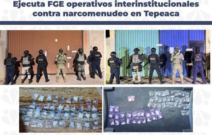 La Fiscalía General del Estado de Puebla, en coordinación interinstitucional, ejecutó dos cateos en Tepeaca como parte de acciones contra delitos contra la salud.