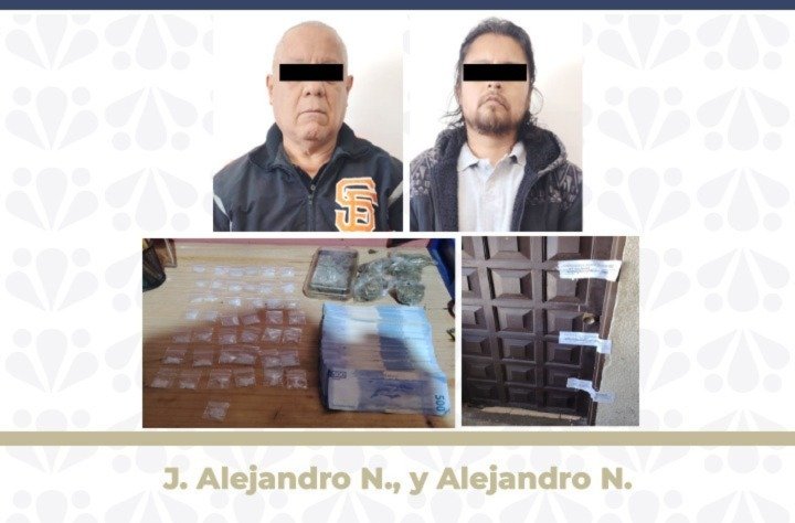 Durante la ejecución de la diligencia fueron detenidos Alejandro N. y Alejandro N., quienes se encontraban en posesión de aproximadamente 50 dosis de droga de distintos tipos, una caja de plástico con más narcótico en su interior, la cantidad de 142 mil pesos en efectivo y una báscula tipo gramera.