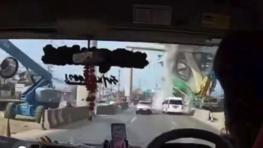 Las dramáticas imágenes muestran como una persona va circulando por la parte baja del puente cuando este se desploma y aplasta varios vehículos pero el conductor alcanza a frenar a tiempo pero todo está envuelto en polvo y no se ve casi nada.