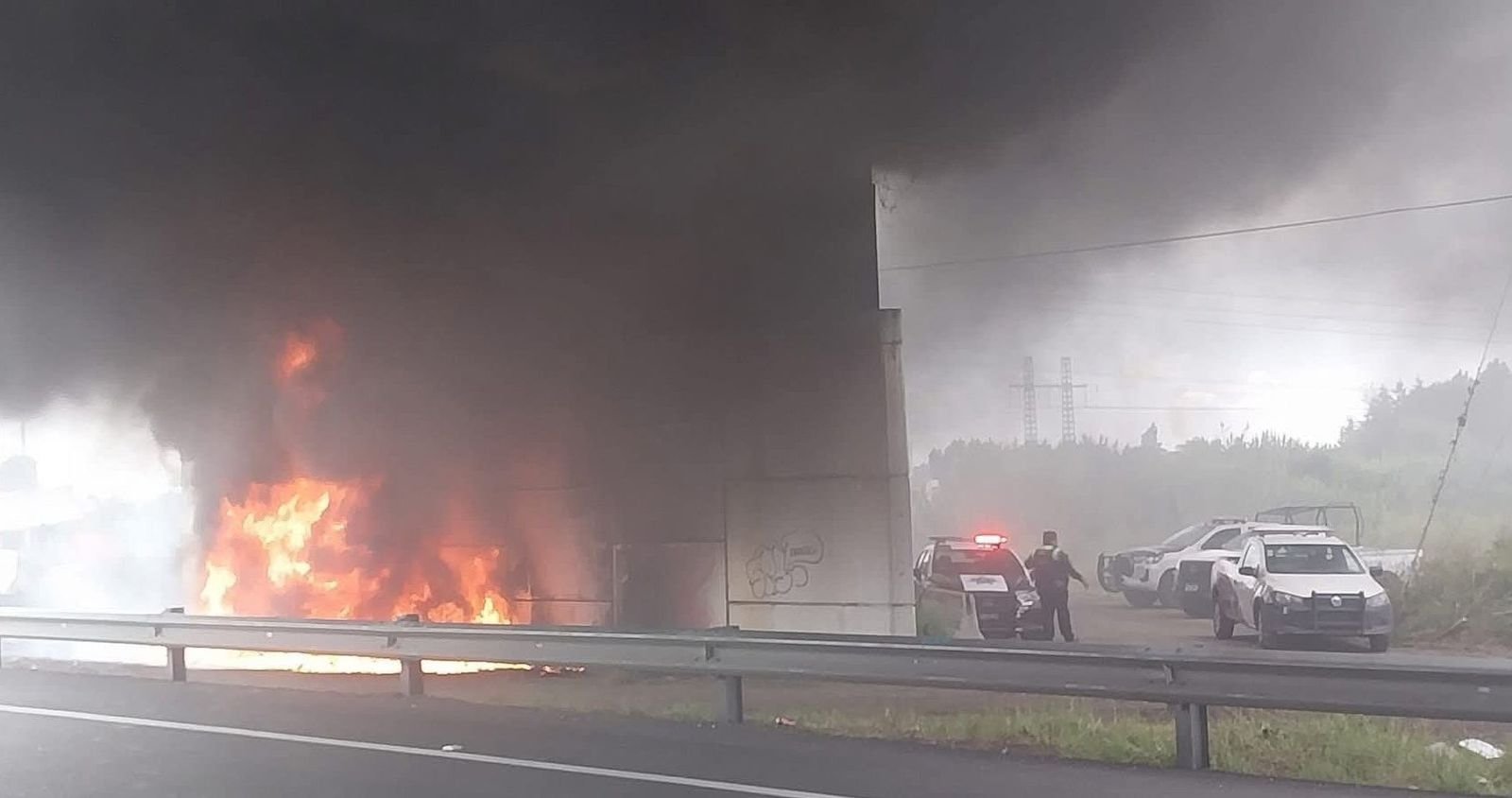 La tensión escaló cuando los manifestantes incendiaron una camioneta y rollos de plástico bajo un puente, generando una densa columna de humo.