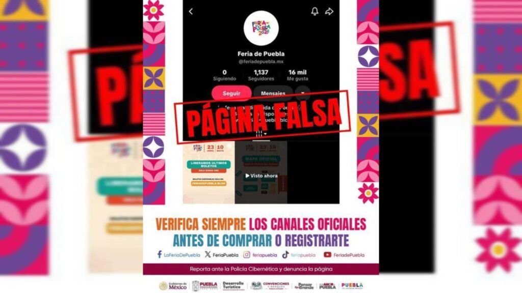 El gobierno del Estado advirtió sobre la detección de un perfil falso en TikTok y una página web apócrifa que simulan vender boletos para el Teatro del Pueblo de la Feria de Puebla 2026. Las autoridades informaron que aún no inicia la venta de accesos para ningún evento, incluidas terrazas VIP o Fila 0. Precisaron … Sigue leyendo Alertan por fraudes en venta de boletos del Teatro del Pueblo 2026