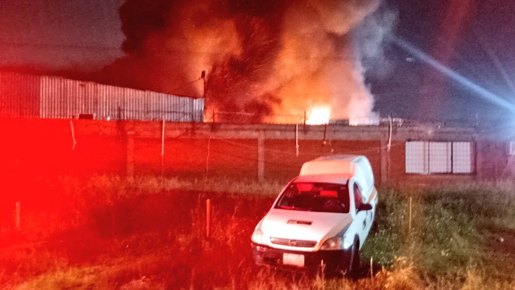 #Entérate 🥵 || Anoche se registró un incendio en un taller mecánico de #tractocamiones que se ubica en el Parque Industrial la #Cienega.