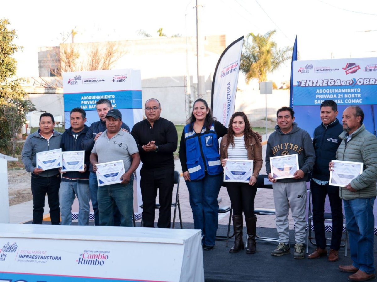 Con el objetivo de dignificar la movilidad y fortalecer el desarrollo urbano sustentable, la presidenta municipal Lupita Cuautle, realizó la entrega de la obra de adoquinamiento en la 1ra. Privada de la 21 Norte, en la junta auxiliar de San Rafael Comac.