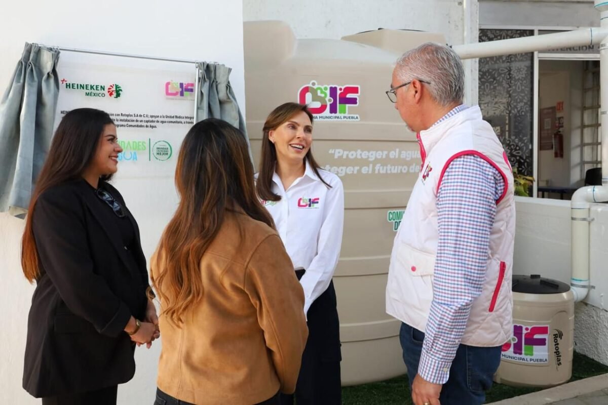 Puebla, Puebla. – Para promover el cuidado del medio ambiente y el ahorro de agua potable, el Gobierno de la Ciudad, encabezado por el presidente municipal Pepe Chedraui; a través del DIF Capital bajo el liderazgo de la presidenta del Patronato, MariElise Budib, entregó el colector pluvial de la Unidad Médica Integral (UMI), mismo que fue donado por Grupo Heineken.