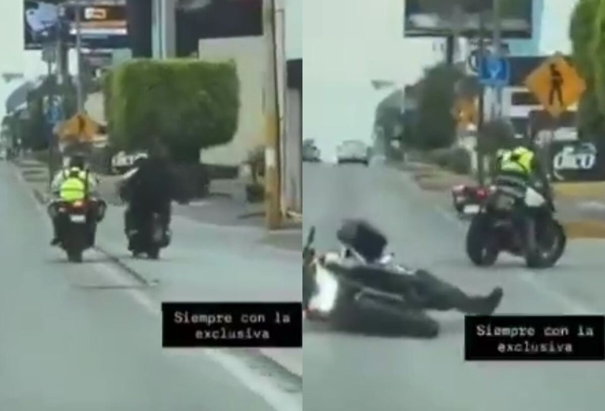 #Video 🚨 || ¿Realmente genera risa? Conductores graban el momento exacto de cuando unos #motociclistas tiran a personal de movilidad que también viajaba a bordo de una unidad de dos ruedas. Los hechos se registraron en la #Atlixcáyotl. pic.twitter.com/3RlHdcQ0JP