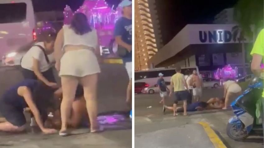 Otra pelea estalló sobre la avenida Costera Miguel Alemán, en el carril con dirección al Zócalo, frente al hotel HS Hotsson. Mujeres y hombres se golpearon a puñetazos y patadas, y se jalaron del… pic.twitter.com/B1CnmunCQ7