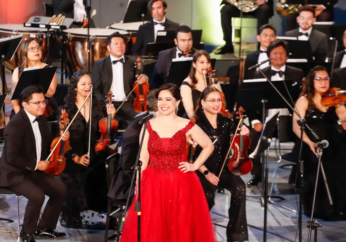 La soprano Rebeca Olvera fue la encargada de protagonizar el programa musical bajo la guía del director artístico de la OSEP, David Hernández Bretón, con el que cautivaron al público asistente.