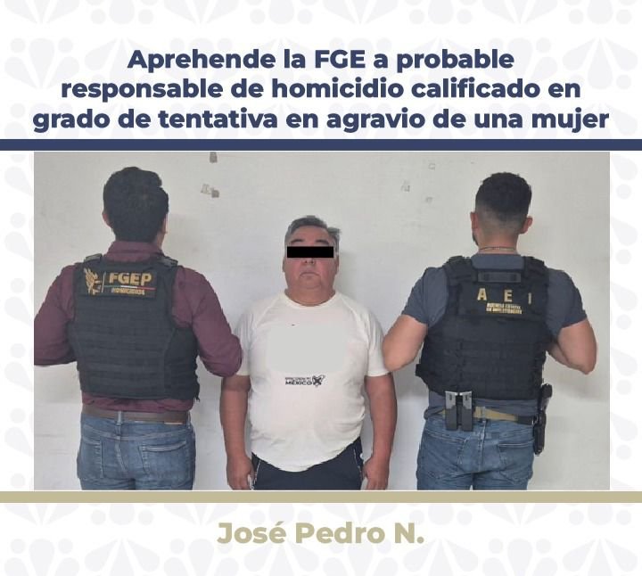 En seguimiento a una investigación por el delito de homicidio calificado en grado de tentativa en agravio de una mujer, la Fiscalía General del Estado logró la aprehensión de José Pedro N., alias “El Peri”, de 55 años de edad, como probable responsable del hecho.