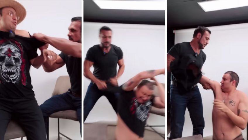 Finalmente, Alberto del Río se desesperó, lo empuja, lo tira al piso y le jalonea su playera hasta romperla por completo. Fue uno de los momentos más tensos que se presentaron durante las más recientes entrevistas de Luisito Rey. Hay que resaltar que se trata de una entrevista preparada, aunque no fingida, ya que los golpes o polémicas son reales, solo que están pactados.