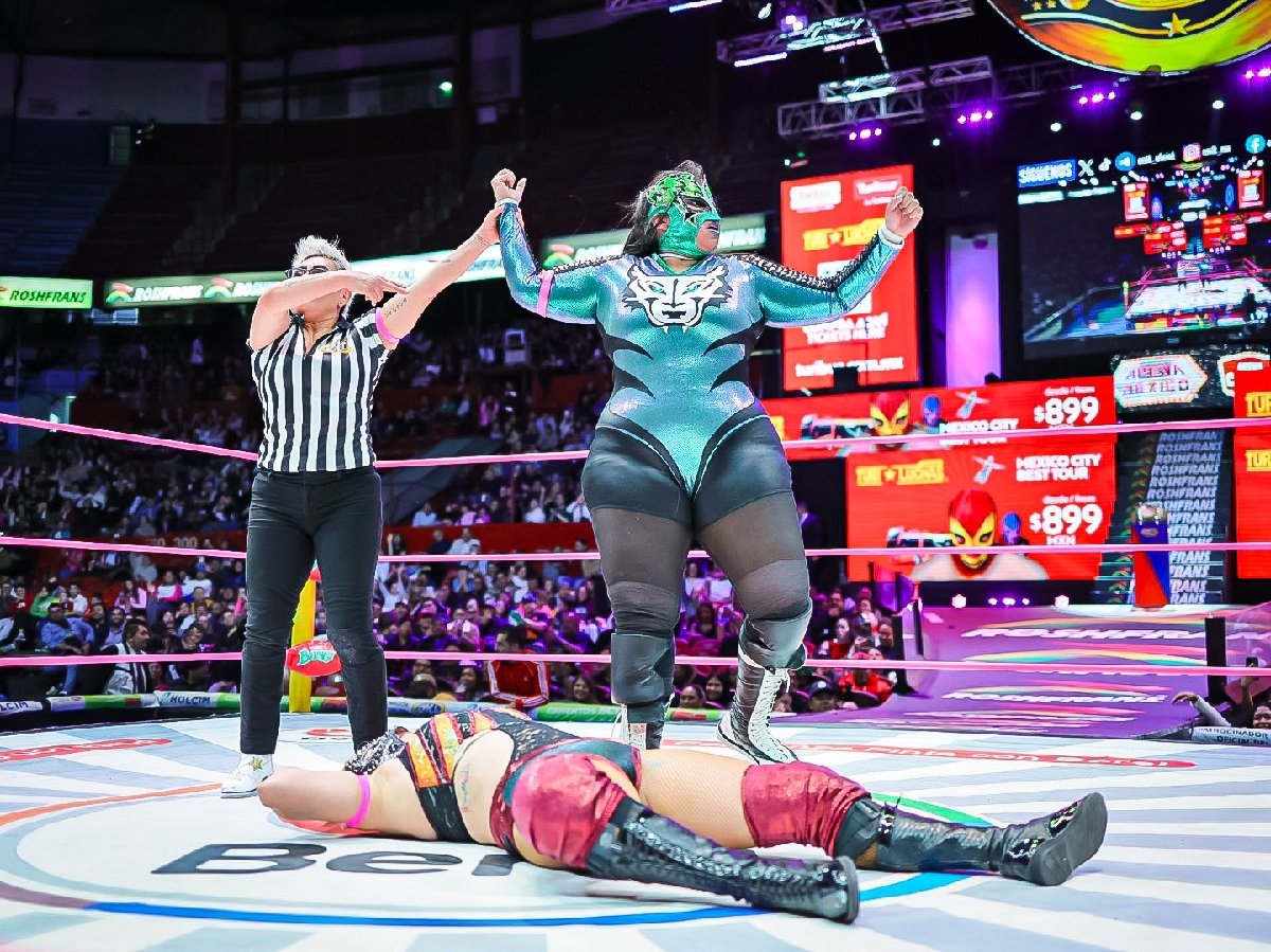 Tessa Blanchard hizo un exitoso regreso a la Catedral de la Lucha Libre, tras vencer a Lluvia a siete segundos de agotarse los 10 minutos pactados en el mano a mano.
