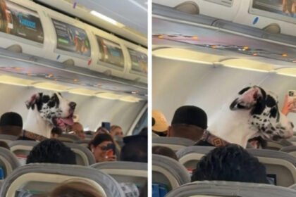 Graban a imponente gran danés en pleno vuelo