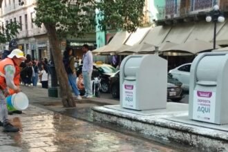 Gobierno de Pepe Chedraui refuerza limpieza urbana con lavado de papeleros y soterrados en el Centro Histórico