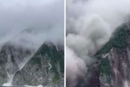 Momento exacto en que una montaña se derrumba en Rusia tras sismo