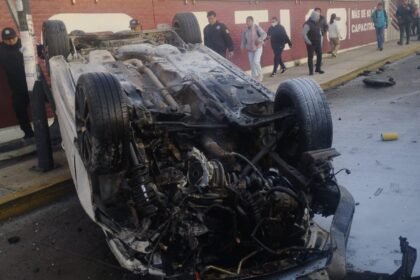 Choque provoca volcadura en 11 Sur
