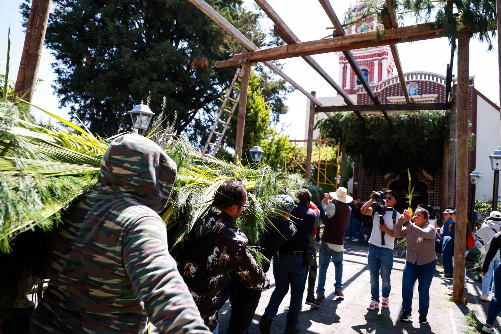 San Andrés Cholula, Puebla. – Como parte de las expresiones culturales que dan identidad al municipio, la presidenta municipal Lupita Cuautle acompaño a habitantes de la junta auxiliar de Santa María Tonantzintla en una de las tradiciones más emblemáticas de la Semana Santa, con las prácticas comunitarias, simbolismo religioso y conocimiento ancestral que se preservan mediante el tejido de palma.