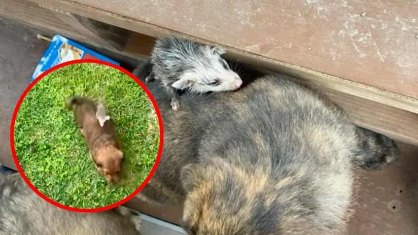 Nuevamente los animalitos se robaron el corazón de los internautas; en esta ocasión se trata de un tlacuache bebé que adoptó a un perrito como su mamá.