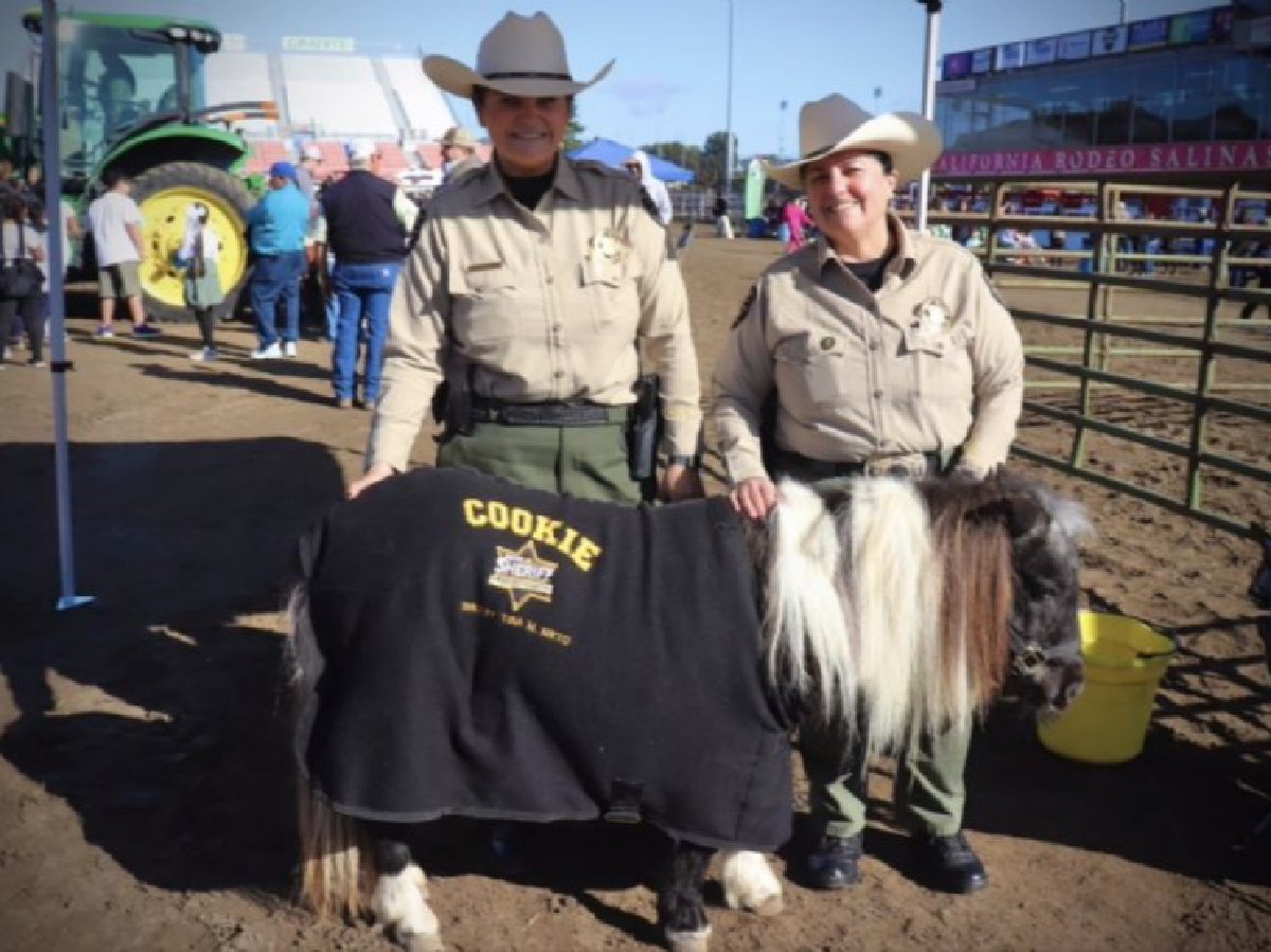 En California, Estados Unidos, autoridades de la Oficina del Sheriff del Condado de Monterey llevaron a cabo una curiosa ceremonia de juramento para Cookie, una yegua miniatura que fue rescatada de un matadero de Texas y que recibió el título oficial de embajadora de Embajadora Honoraria de la Comunidad.